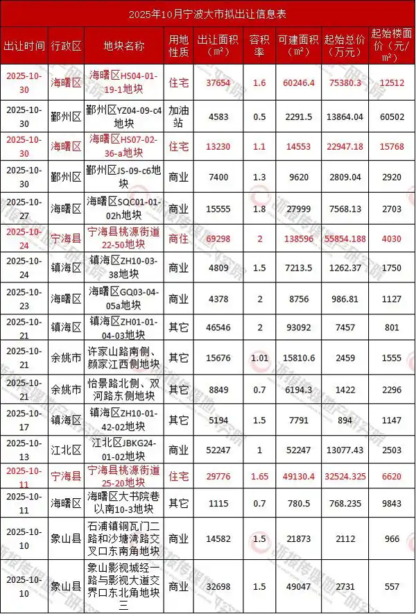 一、#附表# 2025年9月宁波大市土地成交信息表 2025年10月宁波大市预计出让地块信息表 2025年宁波市六区涉宅地成交情况 口水楼市聊侃辨砸 角力楼市舆论去圈子 > |