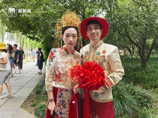 潮新闻客户端 记者 施雄风 通讯员 原开 张瑞 节日里的杭州西湖,被甜蜜与浪漫填满。 10月7日中午,第27届(2025)中国国际西湖情五粮液玫瑰婚典在花港公园华彩启幕,来自北京、上海、重庆等地及意大利、法国、俄罗斯等国家的100对新人,身着国风婚礼服,在西湖山水的见证下喜结良缘。 婚典现场。潮新闻记者 施雄风 摄 作为“爱情之都”,玫瑰婚典自1999年在杭州开办以来,共吸引30多个国家的7000多对新人缔结百年之好。 “我们是杭州本地人,爸妈是第一届玫瑰婚典的新人,所以我们也来啦!”24岁的新人马潇翔和王胜蓝是高中同学,相恋多年的他们前几天刚办完西式草坪婚礼,又特地来体验传统中式婚典的浪漫。 小两口说,父母对当年从武林广场出发的婚礼场景至今记忆犹新。“他们讲起这些时特别感动,我们就决定也来走一遍爸妈的幸福路。”新郎马潇翔说,“中式婚礼端庄典雅,和我们办的西式婚礼是完全不同的感觉。” 此刻,他们的父母正在赶往现场的路上——这场跨越26年的婚典接力,正在西湖畔续写新的佳话。 马潇翔和王胜蓝。潮新闻记者 施雄风 摄 来自深圳的任邦克和张天瑞也来到了现场。这对新人告诉记者,他们是趁着假期专程来杭州参加这场特殊仪式的。 “知道有这个活动就立刻报了名,能被选上特别荣幸”,新娘张天瑞表示,在爱情之都杭州与其他99对新人共同见证幸福,让这份喜悦“翻了100倍”。 “我们是大学同学,毕业后异地六年”,新郎任邦克回忆道,“我在本校读博,她去香港读研,去年才在深圳团聚,完成了爱情长跑,这一刻感觉特别幸福。” 婚典现场。潮新闻记者 施雄风 摄 婚典现场,记者还遇到了一对跨国新人。新娘徐也凌是山东烟台人,新郎大卫来自意大利那不勒斯,两人在邮轮上工作时相识。 “第一次见到她就被吸引了”,大卫用不太熟练的中文回忆道,“当时我需要帮忙翻译中文,经理刚好找她来帮忙。”徐也凌笑着补充:“他总说我漂亮,其实是他中文还不够好,只会这么夸人。” 谈及选择在杭州办婚礼的原因,大卫说:“我喜欢中国文化,大学时就开始学习中文。我还知道杭州和意大利维罗纳是友好城市,杭州也被称为‘爱情之都’,在这里结婚,非常有仪式感。” 徐也凌和大卫。潮新闻记者 施雄风 摄 据悉,婚典以“中意爱情之都 共谱爱情诗篇 共筑和美生活”为主题,结合杭州山水人文之韵,凸显东西方爱情交融之美,实景打造了花港启程、花车巡游、红毯风采、彩船畅游、西湖迎亲、醉美喜宴、西湖盛典等环节,活动一直持续到晚上。 “我们希望通过这场传扬世界的婚典,为国内外百对新人留下难忘而甜蜜的回忆,向世界展示爱情之都杭州的深厚文化底蕴。”婚典组委会主任、总导演王松法表示。 |