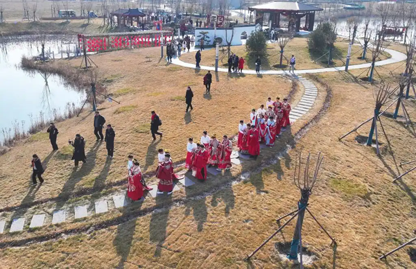1月1日,邢台市百泉鸳水景区鸳鸯泉畔,8对新人参加中式集体婚礼。 1月1日 邢台市百泉鸳水景区鸳鸯泉畔 一场以“泉心泉意·爱在邢台” 为主题的中式集体婚礼 在清泉淙淙与古典乐声中举行 8对新人依古礼 着华服 在亲友见证与泉韵诗意间 共结百年之好 1月1日,邢台市百泉鸳水景区鸳鸯泉畔,新人在参加中式集体婚礼。 1月1日,邢台市百泉鸳水景区鸳鸯泉畔,新人在参加中式集体婚礼。 摄影报道丨河北日报记者 赵永辉 |