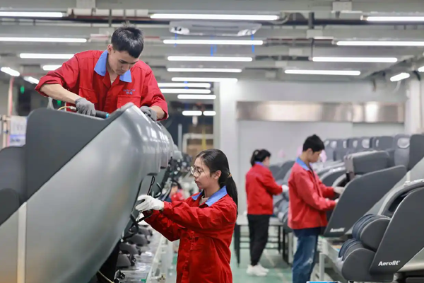 年关将近,闽东福安春寒料峭。走进福建荣耀健康科技股份有限公司车间,只见智能机械臂精准挥舞,焊花轻闪,一台台按摩椅骨架迅速成型;组装线上,工人正忙着将复杂的线路与精密的机芯巧妙结合,产线全速运转,一片繁忙景象。