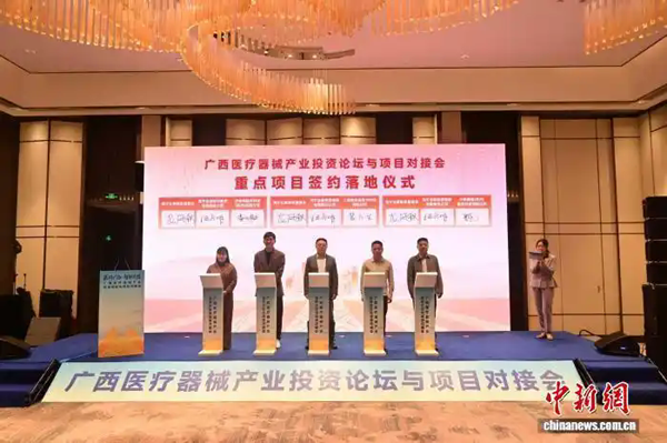 中新网南宁3月14日电(林浩 黄麟淞)3月13日,广西壮族自治区园区发展和投资促进服务中心副主任周洪波表示,广西将持续发挥好园区产业项目与基金对接机制,携手投资机构、产业园区和企业家,构建“园区+基金+链主+生态”的招商体系,推动优质项目加快落地见效,打造西南地区医疗器械产业发展新高地。 图为对接会现场。黄麟淞 摄 当天,2026年广西医疗器械产业投资论坛与项目对接会在南宁举办,本次活动由广西壮族自治区园区发展和投资促进服务中心、广西(上海)产业合作中心等单位联合主办,搭建广西医疗器械产业“政府+金融+企业”协同发展桥梁,促成更多优质产业项目落地广西,吸引众多国内知名医疗投资机构、医疗器械龙头企业参会。 周洪波介绍,当前,广西医疗器械产业发展势头强劲、政策红利明显,截至2025年底,广西政府投资引导基金累计实缴超170亿元(人民币,下同),撬动社会资本实缴超600亿元,推动医疗器械产业加快发展。 南宁市人民政府党组副书记、广西南宁五象新区规划建设管理委员会常务副主任李光劭介绍,南宁是推动中国与东盟合作的枢纽要地,也是医疗器械产业发展高地,已形成中药、化学药、高端医疗器械等产业格局,诚邀医疗器械及金融投资企业,利用当地物流便利、跨境结算高效等优势,共享投资机遇,实现共同发展。 图为桂投医睿创投基金启动仪式的现场。黄麟淞 摄 在广西壮族自治区园区发展和投资促进服务中心推动下,广投资本管理集团有限公司与嘉兴医睿星私募基金管理有限公司深度合作,设立桂投医睿创投基金,聚焦医疗器械及生命科学领域的早期高科技项目,通过构建“科学家+临床+产业+资本”协同生态系统,促成多家医疗器械生产企业与广西签约。 图为合作项目签约仪式现场。黄麟淞 摄 嘉兴医睿星私募基金管理有限公司副总裁潘嶷表示,签约项目可生产手术机器人、光谱流式细胞仪、免疫质谱仪等高端医疗设备,展现了医疗器械领域的技术革新与商业潜力。 此次活动期间,相关医疗器械企业负责人进行项目路演,一批创新性强、商业化路径清晰、投资价值高的项目受到资本青睐。(完) |