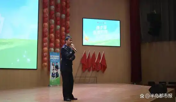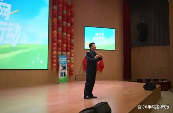 (枣庄市公安局民警刘鹏进行安全用网脱口秀表演) 针对青少年用网风险,枣庄市公安局民警刘鹏、枣庄市公安局高新区分局民警徐毓君,用脱口秀的方式,将安全用网知识搬到了课堂,让学生们在欢声笑语中学习反诈知识和辨谣技巧,提升守法意识。 “遵纪守法,才是行走网络江湖最硬的‘盔甲’。”刘鹏在笑声中严肃指出,建立在违法之上的“酷”,一文不值。
