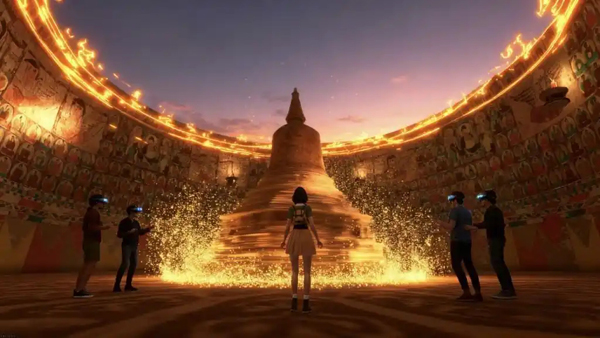 三秦都市报-三秦网讯(记者 夏明勤)“鎏金铜蚕出来时直接震住了。”“穿越到传说中的楼兰古城,意犹未尽。”“从鎏金铜蚕的故乡石泉开始,很nice!”“家门口的丝绸之路,超惊喜。”今年国庆假期,由西影视频、天山电影制片厂、安康博苑蔚来教育共同打造的《梦回楼兰》大型沉浸式XR探索体验,在安康桃花源欢乐谷向公众开放。观众体验后大呼过瘾,纷纷表示通过这场探索旅程,对丝路文明有了更真切的感受。 《梦回楼兰》大型沉浸式XR探索体验以象征丝路繁荣的安康瑰宝“鎏金铜蚕”为叙事起点,借助前沿影视科技,构建起从秦岭腹地直通西域楼兰的“数字丝路”,再现了丝绸之路的开放与交融,也是依托在地文化资源、融合新质生产力的创新实践。 作为“文化艺术与视听科技”的融合实践,《梦回楼兰》大型沉浸式XR探索体验项目通过深度挖掘丝路文化IP,形成了“叙事美学”与“沉浸科技”双轮驱动的核心模式。在叙事维度上,该项目以“协助楼兰公主拯救古城”的悬疑旅程为主线,让体验者化身为丝绸之路上的商人,从安康石泉一路行至楼兰遗址,在影视科技的平行时空中,见证并参与重现盛世楼兰的辉煌景象。 在技术维度上,《梦回楼兰》以前沿的XR技术与大空间娱乐技术为核心支撑,精准复原楼兰遗址地貌,实现移步换景的视觉沉浸感。并结合剧情推进与虚拟NPC互动,赋予用户在36分钟旅程中高度自由的探索权。这种设计既确保了全程的强参与感与惊喜度,也实现了文化叙事与沉浸科技的有机统一。(西影供图) |