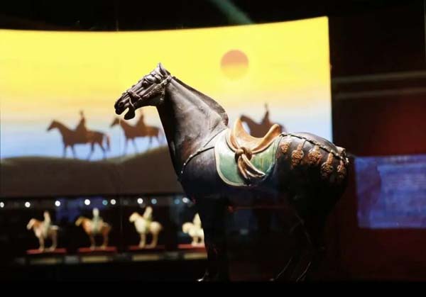 据介绍,整个展览分为“奇骥初现、生生之野、千载骏影、骥语共驰”四大篇章。故宫博物院精选的二十余件珍贵马主题文物首次在上海集中亮相,涵盖礼制、军事、艺术与生活等多个维度。其中,汉代陶彩绘马头、唐代三彩马、三彩胡人骑马狩猎俑、铜“圣旨”合符、银虎钮“镶黄旗护军统领印”等珍贵文物以及《乾隆帝盔甲乘马图》《郎世宁万吉骦轴》等数字展品纷纷亮相,结合数字演绎,生动展现马在历史中的多元意义。
