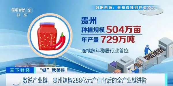 (央视财经《天下财经》)今天让我们走进贵州。在这里,辣椒不是简单的调味配角,而是每道菜肴的灵魂,这份对辣椒的偏爱,不只停留在餐桌上,更深深扎根于当地人的生计中。作为“中国辣椒之都”的遵义,眼下辣椒采收已经落幕,大量上市的各色辣椒,正在为当地的经济发展与产业升级注入强劲动力。 从种植到加工,从销售到出口,贵州辣椒产业规模究竟有多大?发展速度有多快?让我们通过一组数据,来直观解读小小辣椒如何撬动百亿产业。 在贵州,一粒小小的辣椒种子正孕育着年产值超288亿元的庞大产业。这个完整的产业链条从育种研发开始,经过规模化种植、专业市场交易、精深加工制造,最终通过全球销售网络抵达消费者餐桌。 贵州以504万亩的种植规模、729万吨的年产量,连续多年稳居行业首位,带动超140万椒农户均年增收1.8万元。在遵义虾子镇的中国辣椒城,每天有超过600吨辣椒经3000多名经纪人之手发往全国,这里年交易量达35万吨,堪称我国辣椒价格的风向标。 而深加工环节则让辣椒价值再次翻番——全省300多家辣椒加工企业,加工9大系列70多类产品,远销海内外140多个国家和地区,产值达180亿元,居全国第一。其中,贵州油辣椒占据国内市场70%,糟辣椒、泡椒成为贵州辣椒新增长点。 更令人瞩目的是,从辣椒中提取的辣椒素、色素等工业原料,被广泛应用于医药、化妆品、军工等领域,使产品附加值提升4到5倍。 来源:央视财经 编辑:王昕宇 |