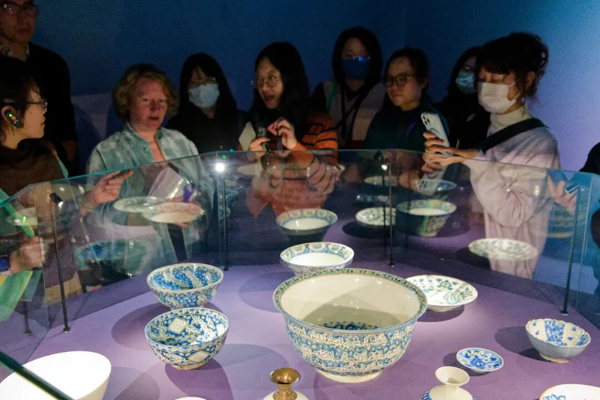 “因为卢浮宫伊斯兰展馆正在整修,让大量作品获得来到中国的宝贵机会。有的展品刚刚入藏,尚未在卢浮宫内展出,而将首次公开展出选在了中国。”据卢浮宫伊斯兰部副主任、策展人朱迪思·赫农介绍,本次展览所展现的不仅是图案美学的繁盛,更见证了文化艺术在流动中彼此吸纳、碰撞与重组的动态过程,“许多展品上出现的‘玫瑰与夜莺’图案,就深受中国宋代花鸟画的艺术影响。”