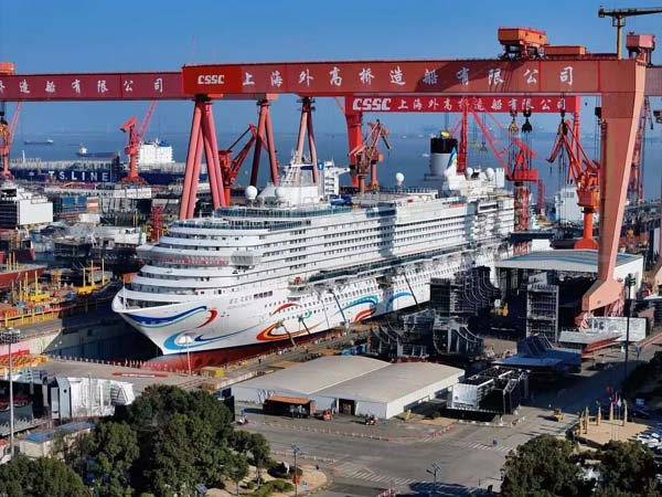 国产第二艘大型邮轮项目进度已超91% 当首艘国产大型邮轮爱达·魔都号自2024年1月1日开启商业首航已成功运营近180个航次、服务近67万宾客的同时,在位于浦东的外高桥造船厂内,国产第二艘大型邮轮“爱达·花城号”正“快马加鞭”建造。