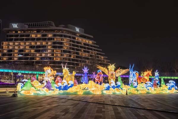 市绿化市容局介绍,丙午马年春节期间,全市景观照明将开启重大活动模式,营造欢乐祥和的节日氛围,喜迎新春佳节的到来。