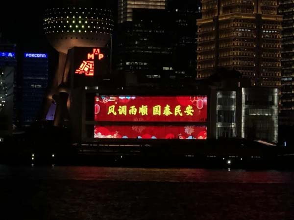 震旦国际大楼、花旗集团大厦、上海中心大厦、浦东美术馆、白玉兰广场、国际港务大厦、国际客运中心建筑群等黄浦江沿岸的主要建筑媒体立面播放春节主题宣传画面。 (黄浦江两岸夜景)