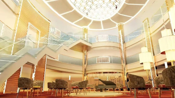 据介绍,相较于首制船“爱达·魔都号”,“爱达·花城号”总吨位增加0.64万吨,达14.19万吨、总长增加17.4米、达341米,型宽37.2米,客房数量增加19间、达2144间。通过优化设计布局,“2号船”的公共区域和户外活动休闲区域面积也较首制船分别增加了735平方米和1913平方米,达到25599平方米和14272平方米,休闲娱乐的体验感也会进一步提升。
