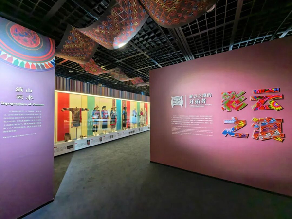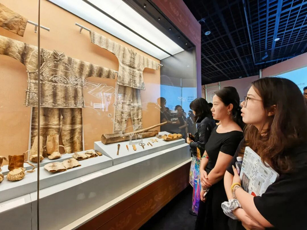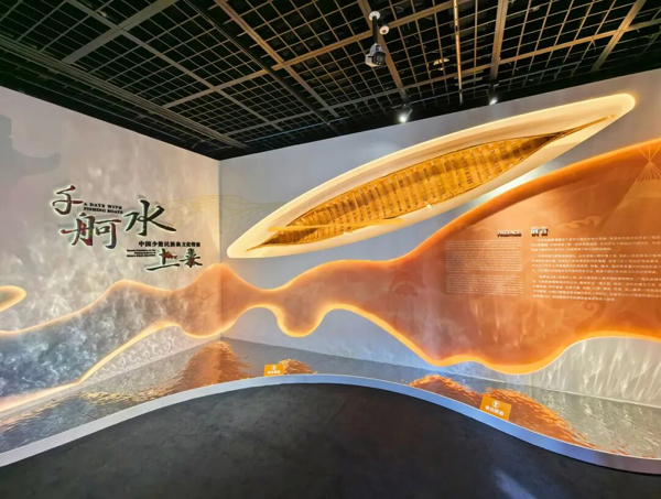 走进展厅,仿佛来到了一个多彩的民族村。鄂伦春、达斡尔、赫哲等民族以质朴自然色调还原“白山黑水”意境,柳编筐、簸箕等日常用品让这里的生活悄然苏醒;京族展区以群青为底色,仿佛北部湾的海风拂面,沁人心脾;云南部分的展览运用热情的红白配色,呼应这片土地上热烈而奔放的民族性格;高山族及尾厅则选用象征团结的中国红,传递出各民族交流交融交往的深厚情感。不仅如此,展览还展示了不同地区的实景照片,搭建了白桦林与兰屿海滩等场景,让观众参观过程中“移步换景”,每处转角皆有一番崭新天地;鄂伦春族的传统建筑“斜仁柱”也来到了展厅,观众可以走进其中,体验原生态的鄂伦春生活场景。