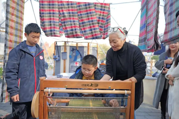 在前滩公园巷最西侧,有一只透明的气泡球成了亮眼的风景——里面藏着一台会“织梦”的老织布机,上海市民不仅能亲手摸到绵密扎实的崇明土布,还能现场挑选萌趣布艺文创,直观感受崇明非遗的魅力。“明年是我的本命年,所以我做一只小马,祝自己马到成功。”在布布瀛非遗工坊主理人周勤指导下,浦东实验中学六年级学生余浩辰用非遗土布做手工,“周老师告诉我,这块土布采用了经典纹饰芦扉花纹,历史非常悠久,也有吉祥的寓意。”周勤表示:“非遗需要活态传承,就需要吸引更多年轻人参与。这次活动就是为了让非遗更加贴近都市生活。”