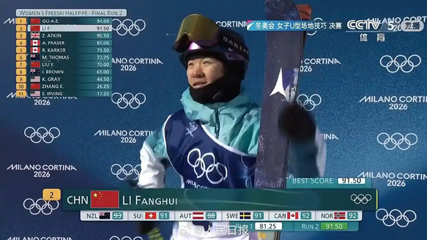 潮新闻客户端 记者 曹林波 在北京时间2月22日傍晚举行的米兰冬奥会自由式滑雪U型场地技巧决赛中,卫冕冠军、中国运动员谷爱凌凭借后两轮的完美发挥,收获她本届冬奥会的首枚金牌和第三枚奖牌(1金2银)。另一位中国运动员李方慧同样凭借连续三轮的出色表现力压英国选手阿特金,以0.5分的优势获得银牌。 米兰冬奥会自由式滑雪U型场地技巧决赛进行三轮,取最高的那一轮分数,中国队有四位选手出战,刘奕杉第2位出场,张可欣第7位出场,谷爱凌第8位出场,李方慧第11位出场。 第一轮张可欣24.25分、刘奕杉70分、谷爱凌30.00分,特别是李方慧得到81.25分,中国4名选手中排名最高,暂列第三。英国选手阿特金第一跳得到90.5分,位列第一。 第二轮比赛中,谷爱凌表现出色,凭借高难度和稳定发挥得到94.00分,跃居第一;李方慧第二滑91.50分,暂列第二,两个人的得分都超过了阿特金的分数。 第三轮,谷爱凌继续挑战自我,将自己的成绩再做提升,拿到了94.75分,李方慧也继续增加难度,达到93.00分。最后一个出发的阿特金,努力增加自己的动作高度,对于谷爱凌和李方慧的地位发起挑战,最终获得92.50分。谷爱凌成功卫冕了这个项目的奥运金牌,李方慧得到银牌,阿特金名列第三。 中国队另外两位选手,张可欣第三轮得到83.25分,排在第六位,刘奕杉得分71.75分,最终排名第九位,两位选手都顺利完赛。 谷爱凌在本届冬奥会夺冠后刷新了多项纪录:她成为冬奥会历史上,首位卫冕自由式滑雪女子U型场地金牌的运动员;个人冬奥奖牌数上升至6枚,获得自由式滑雪运动员历史最多冬奥奖牌;追平王濛6枚奖牌纪录,并列成为中国冬奥奖牌数最多的运动员;成为中国冬奥个人项目,获得奖牌最多的运动员;成为自由式滑雪历史上,唯一连续两届冬奥会都能获得三项奖牌的运动员,3枚奖牌与宁忠岩并列,成为米兰冬奥会获得奖牌最多的中国运动员。 而比起谷爱凌,在决赛中三跳全部成功,并且每一跳得分都有提升的李方慧发挥更加稳定。这位2003年3月10日出生于黑龙江省哈尔滨市通河县的中国自由式滑雪运动员,在2022年参加了北京冬奥会,在自由式滑雪女子U型场地技巧决赛中,以86.50分的成绩获得第五名。2025年亚冬会自由式滑雪女子U型场地技巧决赛中,李方慧以95.25分的成绩夺得金牌,为中国代表团夺得亚冬会首金。 谷爱凌的这枚金牌,也是本届冬奥会中国体育代表团获得的第5枚金牌,金牌数追平此前境外参赛最佳——温哥华冬奥会的5枚金牌。 另外中国代表团本届冬奥会的奖牌总数达到15枚(5金4银6铜),奖牌数为中国代表团参赛冬奥会最多的一届,从而创造了代表团境外参加冬奥会的最佳战绩。 |