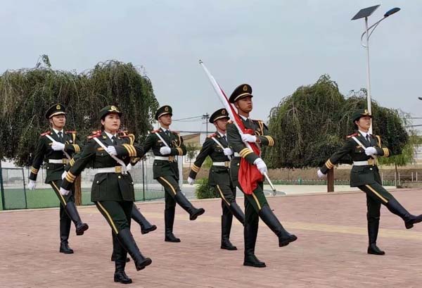 国旗礼赞,爱国传承 9月29日清晨,兰州新区秦川镇初级中学第29届田径运动会盛大开幕,一堂特殊的爱国主义教育课也同时精彩开启。兰州大学国旗护卫队队员身着笔挺礼宾服,迈着铿锵有力的步伐走进操场。在响亮的口令声中,全场瞬间肃静,五星红旗在激昂的《义勇军进行曲》中冉冉升起。此次活动为孩子们上了一堂生动且深刻的爱国教育课。