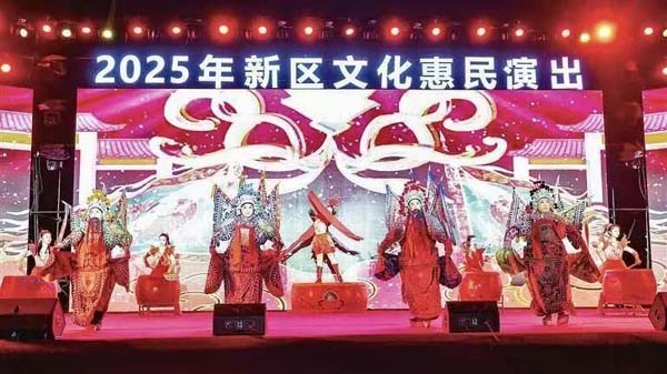 2025新区文化惠民演出现场。 惠民演出,精彩连番 在文化惠民方面,9月23日起,兰州新区在市民广场精心推出系列特色文艺演出,共策划5场各具特色的演出,如《“祖国颂”综艺晚会》《国风·国韵民族音乐会》等,有力加强了民族文化交流。 10月1日至8日,中川·青云驿将推出“月满中川迎双节、家国同心共欢庆”系列活动,集文化体验、民俗展示、美食品鉴等多种元素于一体,极大丰富了群众的文化体验,巩固了民族团结基础,为构筑中华民族共同体意识注入了强大的文化动能。