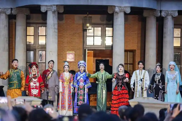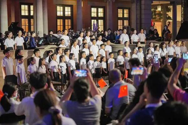 傍晚时分,华灯初上,在秋夜的微风中,音符与百年建筑交织共鸣。10月1日,上海音乐学院在淮海路校区城市音乐会客厅前草坪,为广大市民和音乐爱好者献上一场国庆草坪音乐会。 音乐会汇集活跃于艺术舞台上的上音名师,屡获国内外奖项的硕博学生,备赛高级别比赛的拔尖本科生,以及少数民族学生、上音学生乐团、上音少年合唱团等,不仅是上音教学成果和艺术水准的集中展示,更是一次与市民共享艺术盛宴、共庆祖国华诞的温馨聚会。 在指挥家程晔的执棒下,50余人的上海音乐学院交响管乐团以一曲气势恢宏的《红旗颂》拉开序幕,瞬间点燃现场的爱国热情。 随后,艺术的画卷徐徐展开:男高音冯浩然深情演绎两首风格迥异的作品:中国艺术歌曲《嘉陵江上》与意大利名曲《妈妈》。青年小提琴家林瑞沣带来维尼亚夫斯基华丽精湛的《D大调波兰舞曲》,在钢琴家黄秋宁的默契伴奏下,尽显弦乐之美。从陆在易先生根据诗人艾青名作谱写的《我爱这土地》,到普契尼歌剧《贾尼·斯基基》中的咏叹调《我亲爱的爸爸》,女高音范雪妍的歌声饱含赤诚。 音乐会的形式丰富多元,尽显上音兼容并包的艺术风范。婉转深沉的二胡重奏《良宵》,以清新悠扬的旋律,描绘了月夜良辰的静谧与美好。少数民族学生的合唱《爱我中华》《唱支山歌给党听》,烘托出各民族像石榴籽一样紧紧抱在一起,形成强大合力、团结一心的景象。民乐三重奏《三个瞬间》,以琵琶、中阮、大阮共同展现民族室内乐的细腻与张力。一曲唢呐与民族管弦乐交织的《百鸟朝凤》,在吴强教授的指挥下,由上音民族管弦乐团50余位乐手携手四位唢呐专业学生呈现,唢呐高亢嘹亮的音色模拟百鸟争鸣,寓意盛世欢歌,吉祥如意。 “在宏大的演出阵容中,我或许只是一个音符。但正是这千千万万个音符,紧密相连,默契配合,才最终汇成了波澜壮阔的和谐乐章。音乐的魅力在于‘和’,而国家的繁荣在于‘合’。”小提琴独奏表演者、管弦系硕士研究生林瑞沣表示,这次演出让他对“集体荣誉”与“家国一体”有了更为具象而深刻的理解。 上音少年合唱团以童声演绎国潮新作《我乃哪吒三太子》《就是哪吒》,瞬间拉近了高雅艺术与年轻听众的距离,而《我们是共产主义接班人》《灯火里的中国》,童声稚嫩却充满力量,表达希望与传承。 “音乐是我们表达情感最直接、最纯粹的方式。今晚,我们用最饱满的热情、最精湛的技艺,将最美的乐章献给了我们最亲爱的祖国。当熟悉的旋律响起,当看到观众席上的笑脸,我无比确信,艺术的力量可以直抵人心,凝聚起全国各族人民最强大的精神力量。”上音少数民族学生、来自果洛藏族自治州的麻切仁措说。 上音于2024年元旦正式面向社会公众开放。一年多以来,先后举办多个主题展览、蔡元培美育大讲堂、草坪音乐会等,建设可阅读、可聆听、可感知的沉浸式开放校园,将优质艺术资源向全社会辐射,将校园文化与城市公共生活相融,助力城市文化建设。 国庆期间,上音开放空间持续供市民预约参观,并将在全新开张的“艺文空间”等地方进行快闪演出。 当音乐会压轴曲目《歌唱祖国》的旋律响起,现场自发地变成了百人大合唱。从稚嫩的童声到苍劲的老声,从专业的音乐学子到普通的市民游客,所有人的歌声,汇聚成一股温暖而磅礴的洪流,在校园上空久久回荡。 |