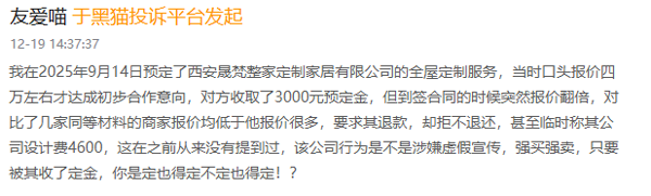 界面新闻记者 | 王妤涵 2025年,随着智能家居加速渗透、家装整装渐成主流,家居消费正从“单品购置”迈向“全链路服务”。 然而,界面新闻梳理过去一年中消协及各地消保委发布的投诉数据,并结合黑猫投诉平台上的消费者反馈发现,在家居消费领域,智能家居体验落差大、大牌产品“短命”、售后无兜底等问题日益凸显,成为过去一年消费者维权的主要痛点。 当传统家居品牌纷纷涌入“智能”与“全屋定制”的风口,产品与服务能力却未能同步升级。加之家装行业长期存在的低价引流、隐形增项等顽疾,家居消费本该带来的“幸福感”,正在被层出不穷的维权难题消解。 智能家居“伪智能” 智能家居本应是家居消费升级的重要体现,但2025-2026年,智能家电、智能卫浴的投诉量同比上涨明显。“宣传与实际体验不符”成为核心问题,部分品牌仍存在“智能掺水”“功能失效”等现象,令消费者直呼交了“智商税”。 江苏省消保委2025年底发布的智能家居家电产品消费调查报告显示,在使用过调查所涉10类智能家居家电产品的受访者中,近六成消费者表示在使用过程中遇到过问题。 其中,扫地机器人和洗地机的问题占比最高,达到47.76%;其余依次为智能洗衣机、智能门锁、炒菜机、智能冰箱、智能音箱、智能马桶、智能感应式洗手液机、智能窗帘、智能灯。 受访消费者使用时遇到问题的智能家电类型 图源:江苏消保委 据界面新闻观察,部分产品“伪智能”的核心问题集中表现为功能夸大、设备不兼容以及耐用性低。 “买的人体工学智能马桶不会翻盖,不会自动冲水,二维码售后信息不明,维修非常不及时,体验感非常差。”消费者张先生表示。 界面新闻截图自黑猫投诉平台 界面新闻从投诉平台看到,深圳的张女士去年从某知名品牌旗舰店花4000多元购买一台扫地机器人,使用后发现无法正常返回基站、无法找到指定区域、避障功能也有误。她认为,对照品牌宣传,其智能化水平“有些言过其实”。 有江苏网友发帖称,其花费上万元购入的高端智能门锁使用数月便出现严重故障——多次指纹密码验证成功,锁体却无响应,严重影响居住安全与日常出行。 更令消费者不满的是,不同品牌的智能家居往往需要安装多个独立App,彼此无法互联互通。家住深圳的何女士对界面新闻表示:“空调、电视、扫地机器人都是陆续买的,每个家电都有自己的客户端,手机里一堆App,特别不方便。” 江苏省消保委也指出,这种“手机变App收纳盒”的现象,与智能家居追求便捷的核心诉求背道而驰。 晶捷品牌咨询创始人、战略品牌专家陈晶晶在接受界面新闻采访时指出:“过去几年,在增长压力下,家电企业普遍将‘智能化’作为核心卖点,但不少产品的升级仍停留在设备叠加和联网控制层面,而非系统能力的整体提升。‘伪智能’本质上是营销话术与技术能力之间的错位——概念走在前面,体验却未同步兑现。” 陈晶晶进一步分析,智能家居体验不佳的另一重要原因是平台与协议割裂,不同品牌设备难以顺畅互联。“行业真正的突破,在于生态开放、场景智能与系统能力成熟。当系统能够理解用户习惯并主动提供服务,让用户几乎感受不到技术存在时,才能称得上是真正的智能家居。” 定制家居踩坑 全屋定制作为家居消费的核心品类,成为2025-2026年投诉量最高的领域之一,其中加盟店经营乱象更是直接引发大量维权纠纷。消费者的投诉集中指向“付款后停工、门店闭店失联、退款无门”三大问题,部分品牌甚至出现“收全款未签合同”的违规操作。 陕西西安的张先生反映,其于去年9月预定全屋定制服务,商家口头报价四万元左右达成初步意向,收取3000元预定金。但到签合同时,价格突然翻倍。张先生对比了几家同等材料的商家,报价均远低于该店,要求退款却遭拒。商家甚至临时称公司设计费为4600元,此前从未提及。张先生质疑:“该公司行为是不是涉嫌虚假宣传、强买强卖?只要被收了定金,你是定也得定,不定也得定?” 界面新闻截图自黑猫投诉平台 界面新闻注意到,常熟市消保委支塘分会也曾接到市民投诉,反映家中老人在某家具公司定制一套家具,支付11000元并签订订购合同。因老人系在家人不知情的情况下购买,市民于购买次日即前往商家协商退款。商家以“定制家具一经签约即投入生产”为由拒绝退款。消费者认为合同未明确约定不可退款、家具也尚未制作,质疑商家理由,遂向消保委投诉求助。 据界面新闻观察,定制家居类投诉中,加盟店问题占比较多,其中“付款后不交付”“门店闭店失联”问题尤为突出。 且因定制家具具有特殊性,一经签约即进入生产流程,退货难度大、成本高,消费者成功全额退款的比例较低。即便有第三方平台介入,品牌总部与加盟店也常互相“踢皮球”,难以给出实质性解决方案。 值得注意的是,定制家居企业的营收数据仍在增长,多家头部品牌在2025年财报中表示“全屋定制业务收入同比增15%-20%”。但扩张的背后,是对加盟店的管理失控,缺乏统一的履约标准、资金监管机制,甚至部分品牌为追求加盟数量,降低招商门槛,导致加盟店良莠不齐,最终将经营风险转嫁给消费者。 维权陷入死循环 如果说定制家居、智能家居的问题集中在产品端,家装服务的乱象则贯穿“售前-售中-售后”全链路。 2025-2026年,家装服务投诉中,低价引流+隐形增项、